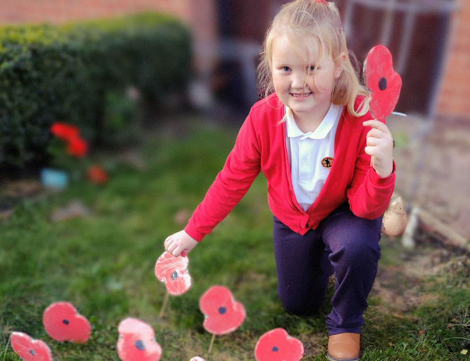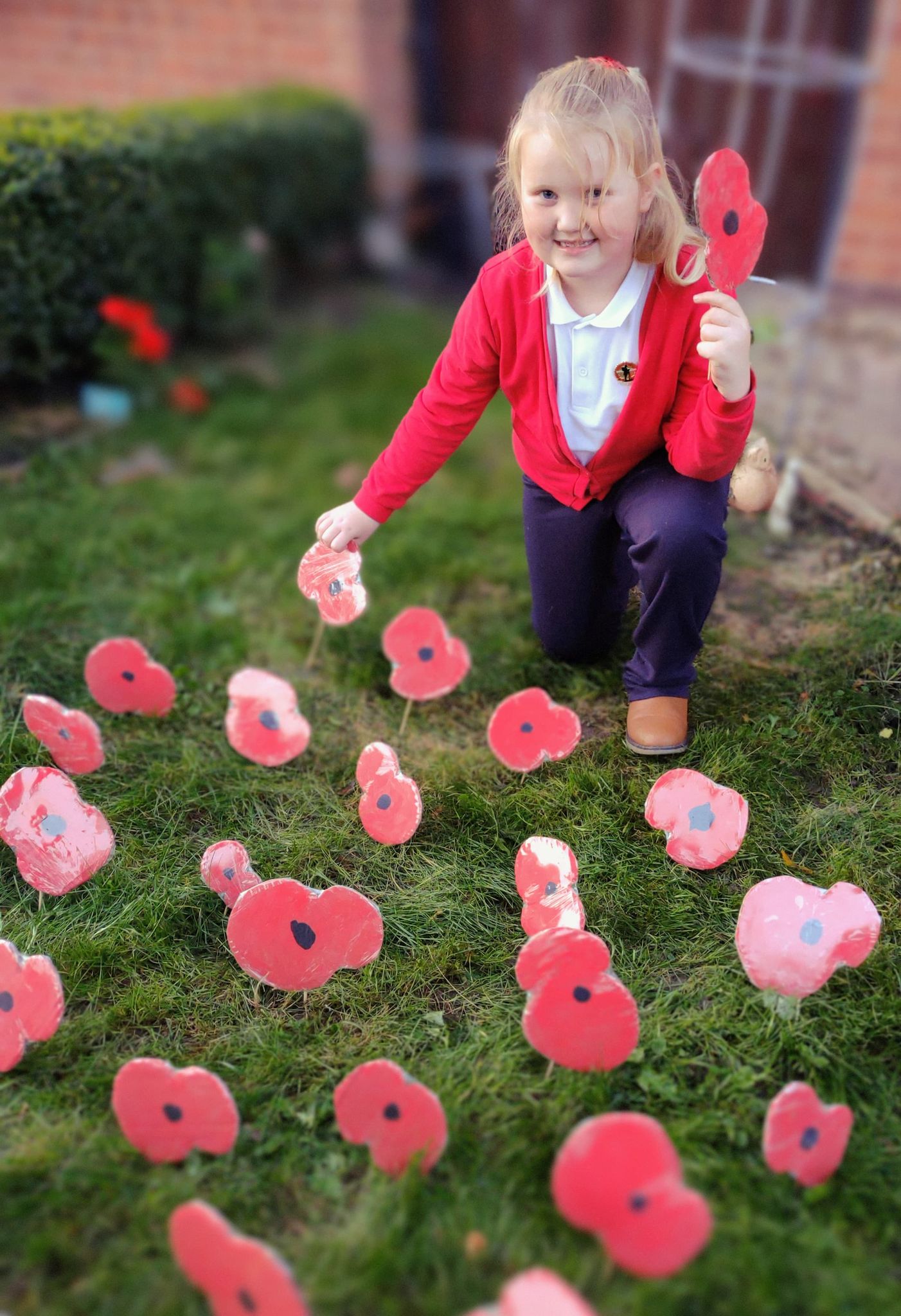 6 year old All Blacks Junior Elise Shaw, whose future ambition is to be a soldier in the army to help people and drive a tank, has already started to raise money for the Royal British Legion by creating her very own poppy garden, in here front garden.